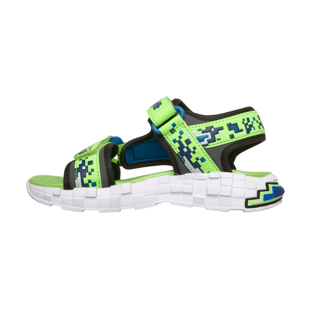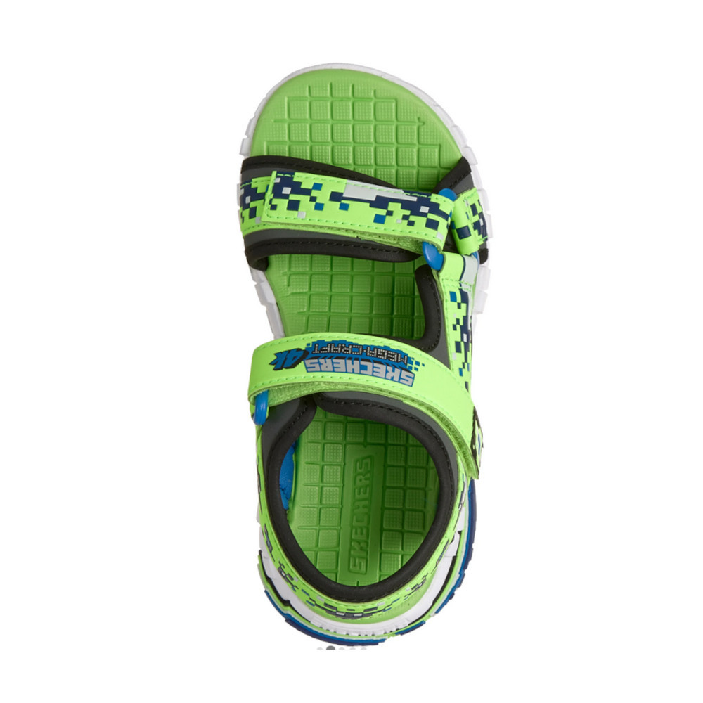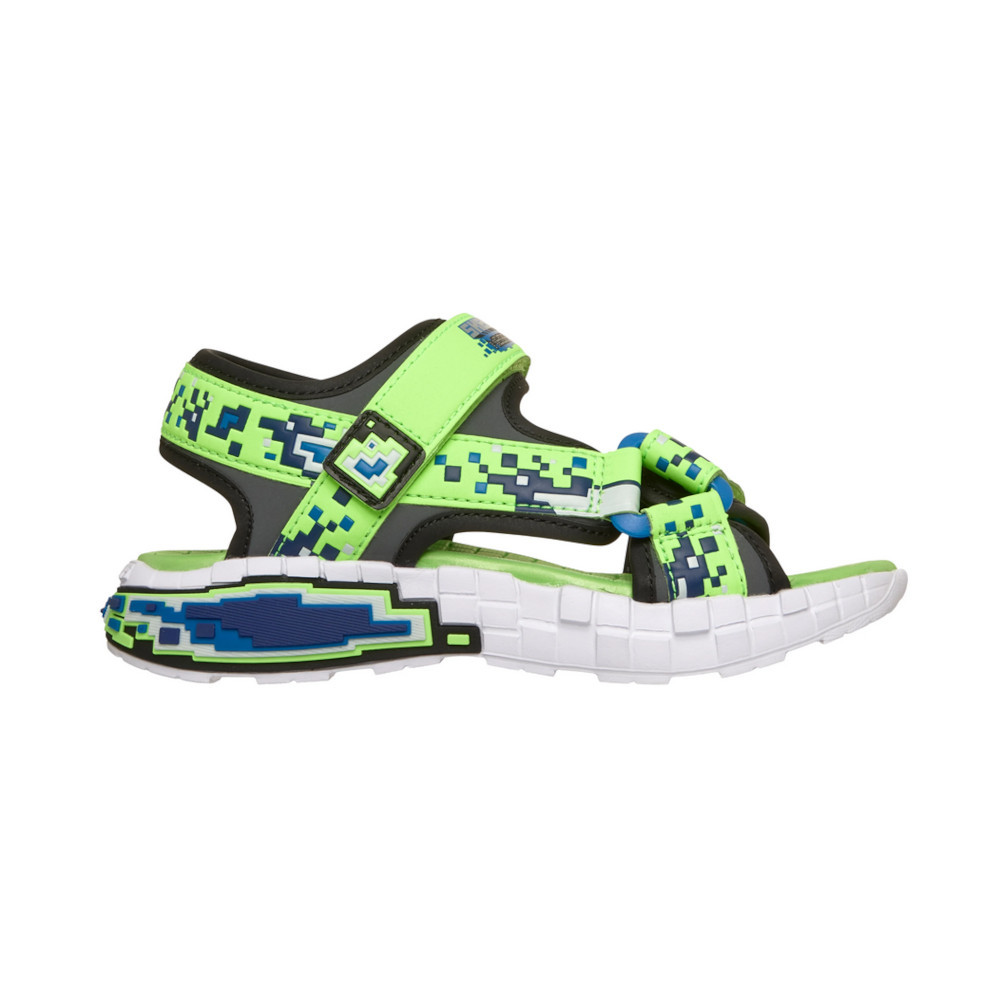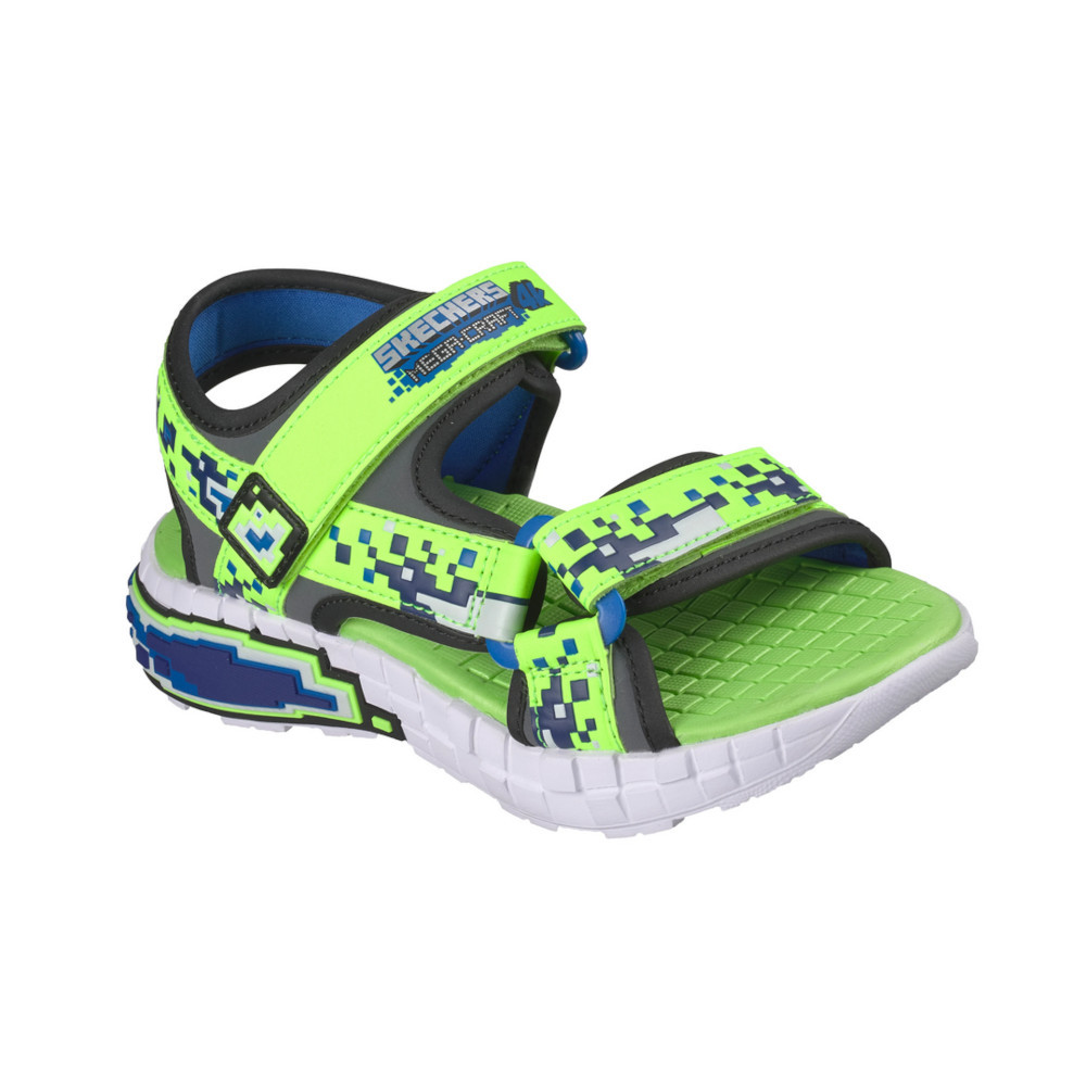 A blokkos stílus és a napos időhöz illő kényelem tökéletes párosa – Skechers Mega-Splash 4K. Ez a Mega-Craft® mintás szandál szintetikus pántos felsőrésszel, Skechers adaptív zárral és vidám mintás középtalppal készült.